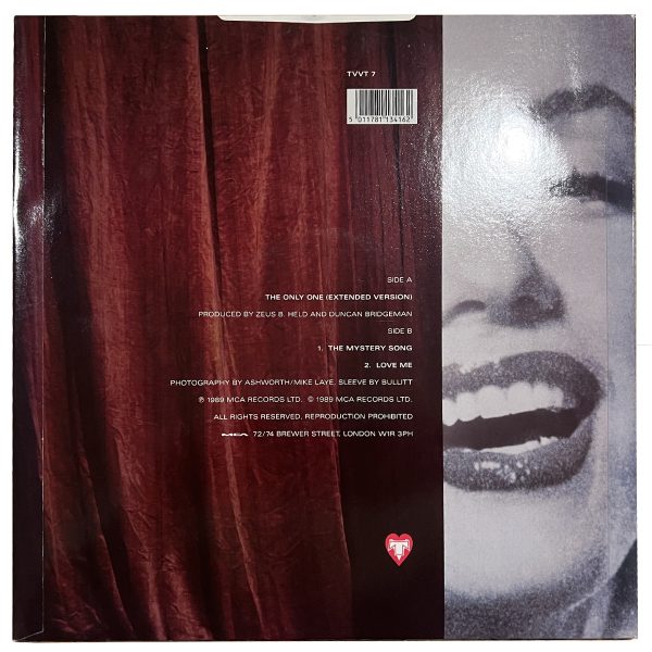 The cover photo is of Transvision Vamp in front of the iconic Marilyn Monroe cut out (partner to the Elvis cut-out in the ‘Baby I Don’t Care’ video/artwork). ‘The Only One’ was the second single taken from Transvision Vamp’s world-wide 1989 No.1 Album ‘Velveteen, this version if an extended mix.